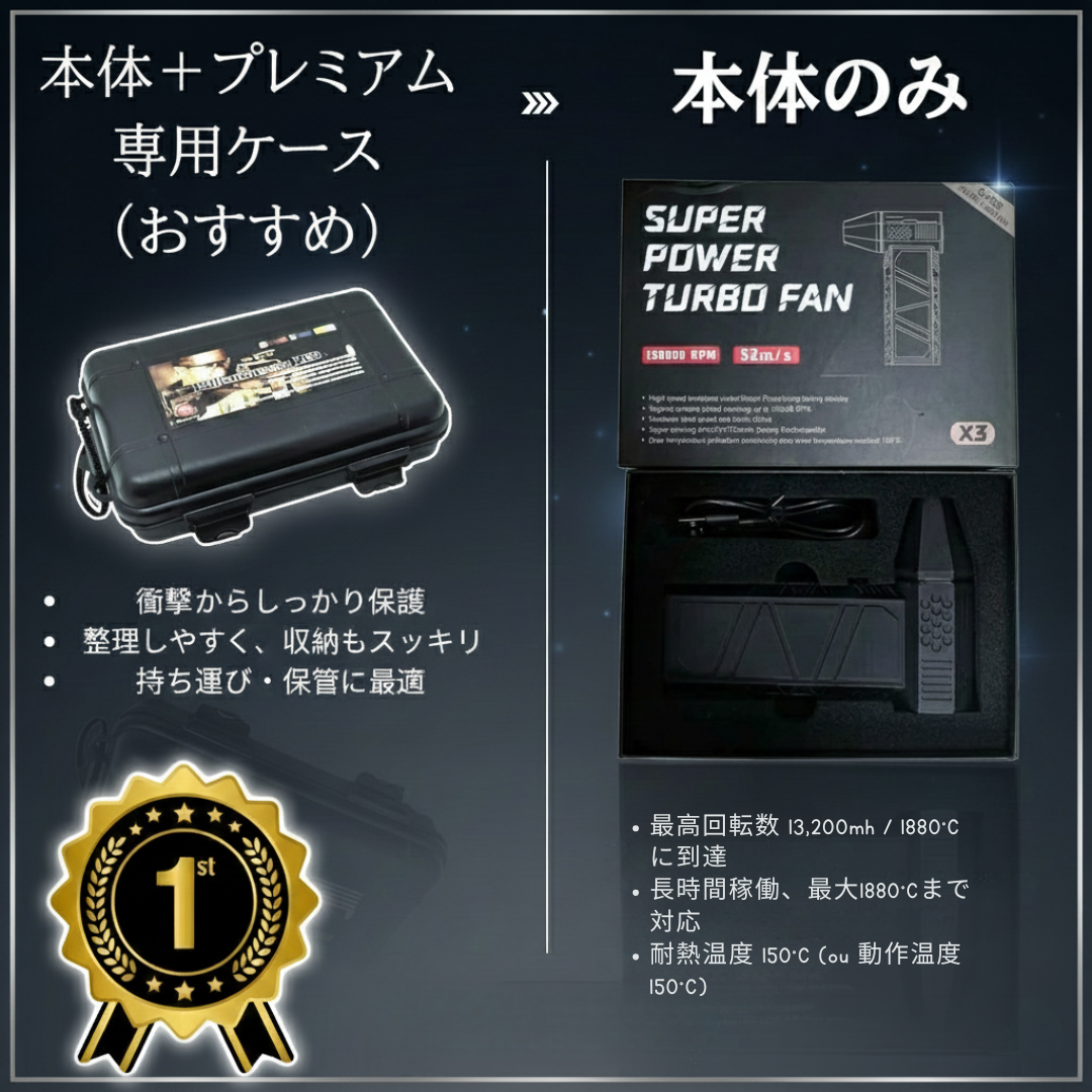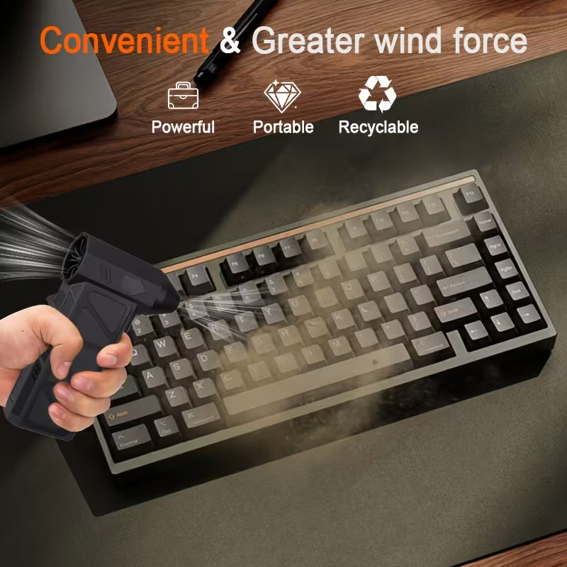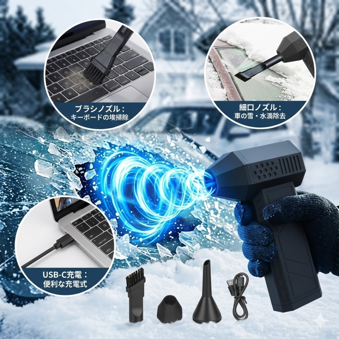 最大の違いは「パワー」と「耐久性」です。本製品は130,000RPM(毎分13万回転)の超高速ブラシレスモーターを搭載しており、市販の缶入りエアダスターや一般的なハンディファンとは次元の違う風圧を生み出します。